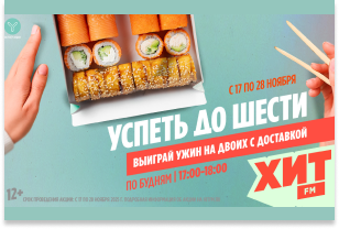 По будням с 5 до 6 вечера по Москве радио Хит FM устраивает яркую эфирную игру для тех, кто любит вкусно поесть. Все, что нужно, чтобы стать победителем, – успеть до шести!